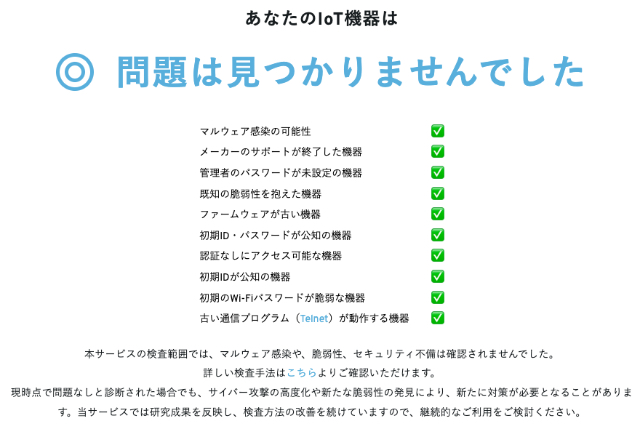 AM-7200D8BE の設置後、自宅の Wi-Fi ルータの状態を確認してくれる am I infected? で確認してみましたが、特に問題ないようでした。